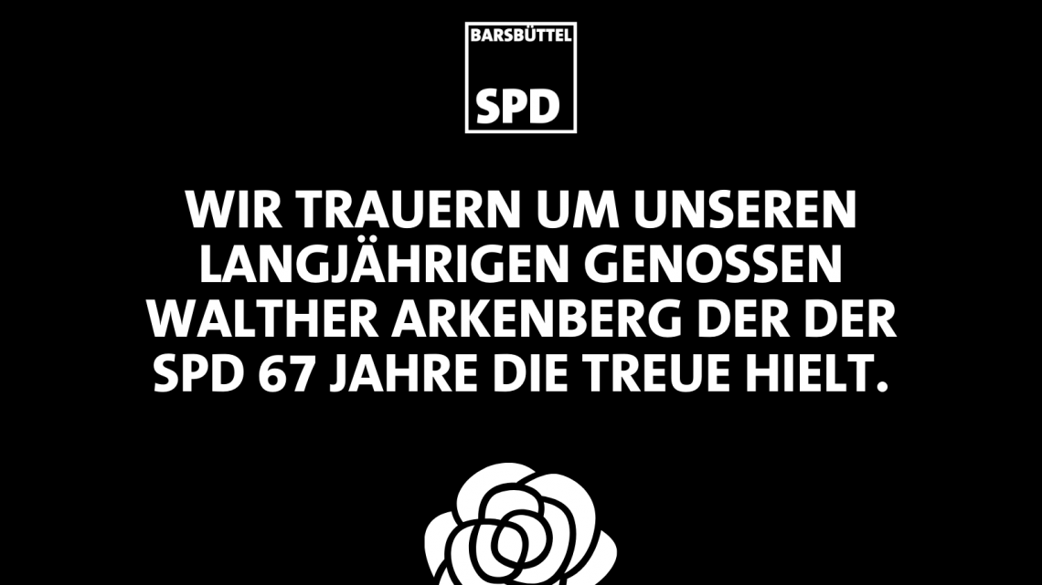 Wir trauern um unseren langjährigen Genossen Walther Arkenberg der der SPD 67 Jahre die Treue hielt.